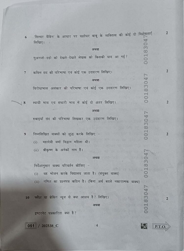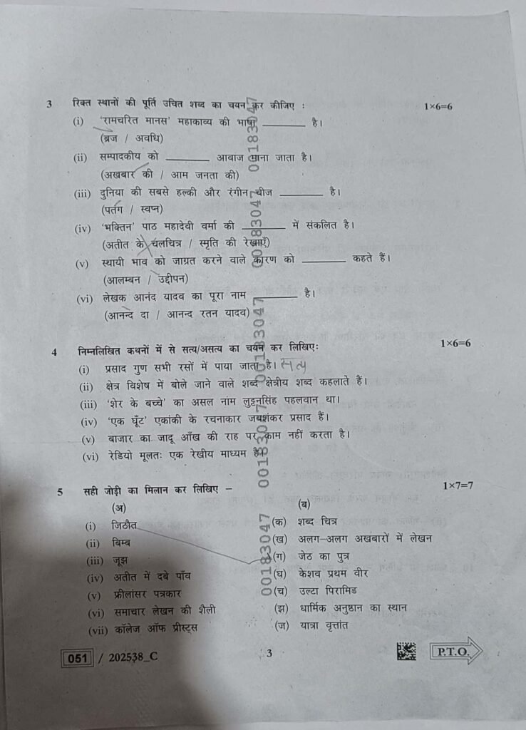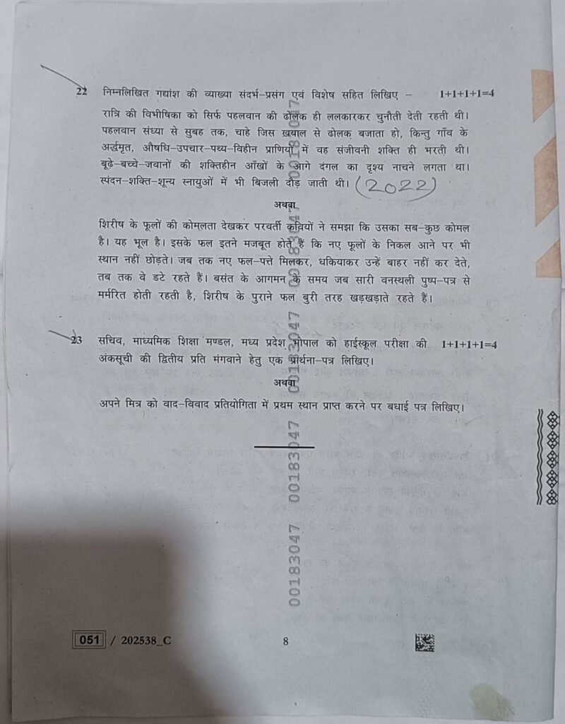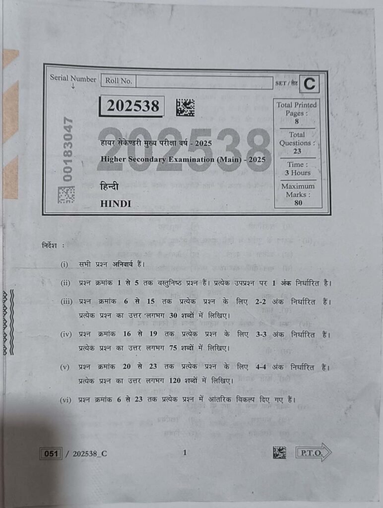 हिन्दी (051) परीक्षा प्रश्न पत्र – 12 वीं, उच्चतर माध्यमिक परीक्षा – 2025, मध्य प्रदेश माध्यमिक शिक्षा मंडल। Hindi (051) exam question paper – 12th, Higher Secondary Examination-2025, Madhya Pradesh board of secondary education.
