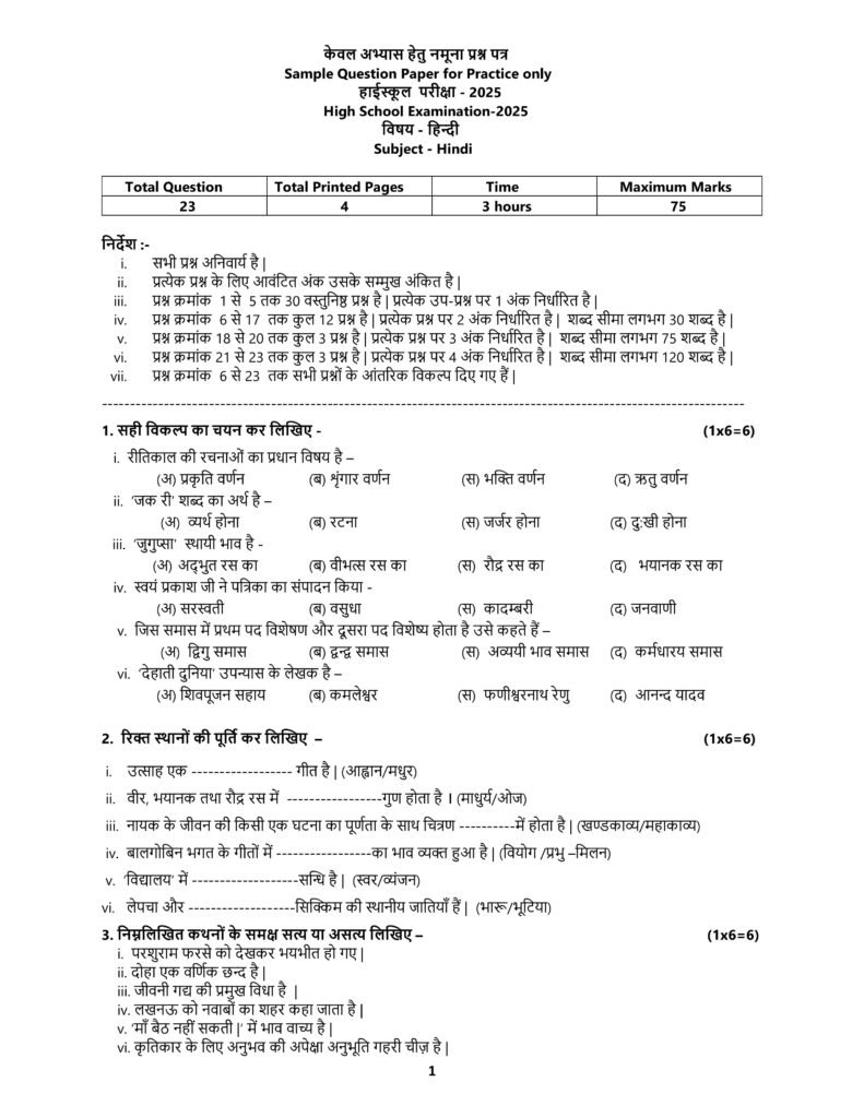 हिन्दी (401) (अभ्यास नमूना) प्रश्न पत्र – 10 वीं, उच्च माध्यमिक परीक्षा – 2025, मध्य प्रदेश माध्यमिक शिक्षा मंडल। Hindi (401) (Practice Sample) question paper – 10th High School Examination-2025, Madhya Pradesh board of secondary education.