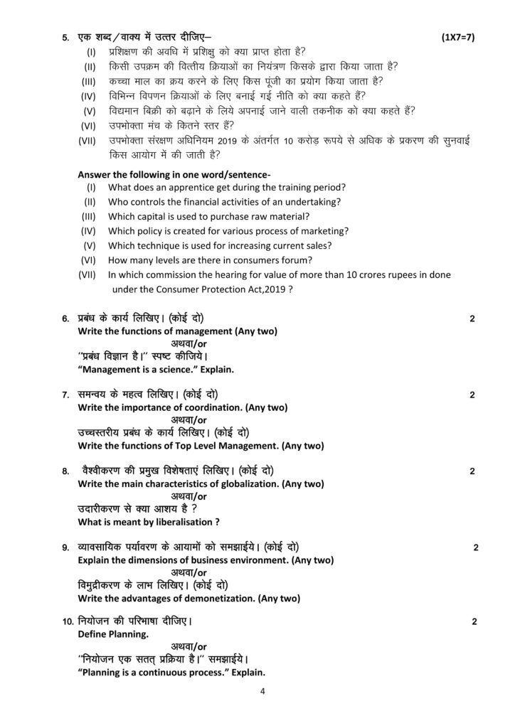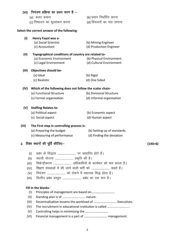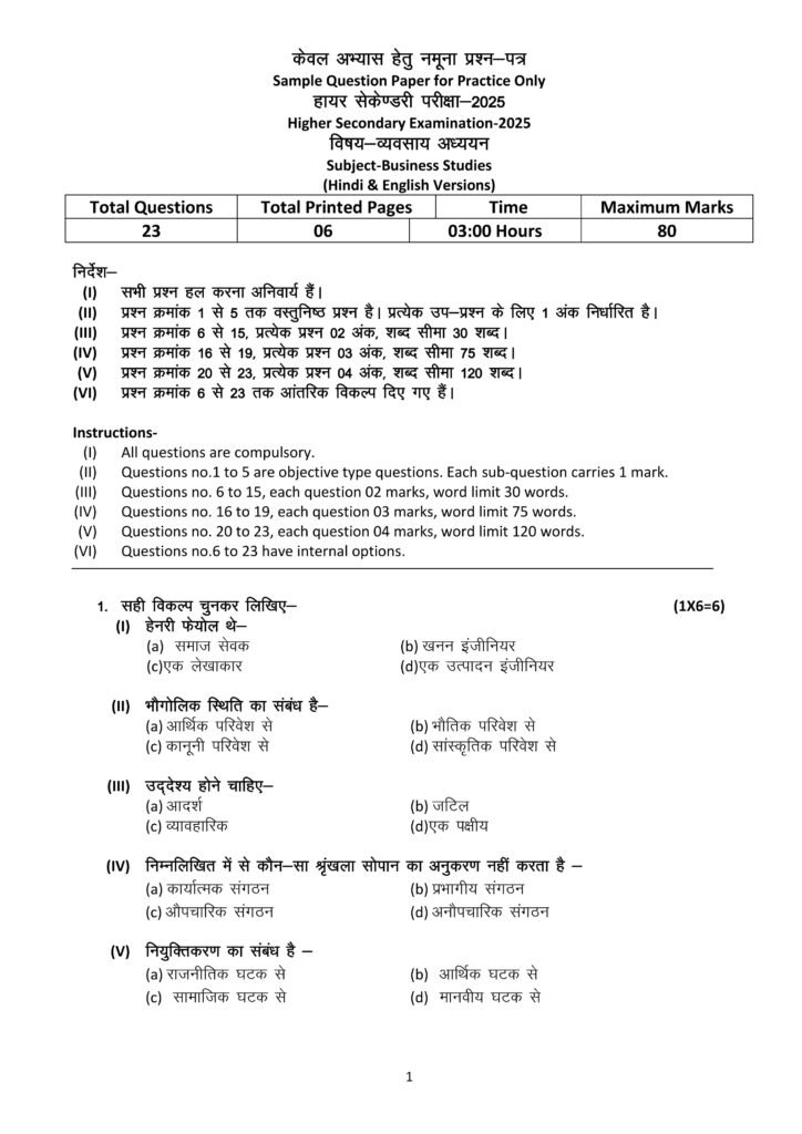 Business Studies (310) (Practice Sample) question paper – 12th, Higher Secondary Examination-2025, Madhya Pradesh board of secondary education. व्यवसाय अध्ययन (310) (अभ्यास नमूना) प्रश्न पत्र – 12 वीं, उच्चतर माध्यमिक परीक्षा – 2025, मध्य प्रदेश माध्यमिक शिक्षा मंडल।