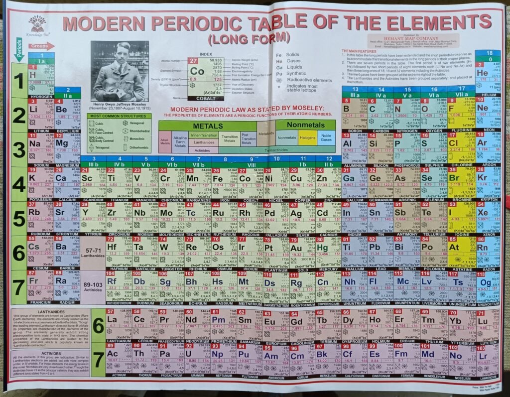 तत्वों की आवर्त सारणी, कुल 118 तत्व, 7 पंक्तियाँ और 18 स्तंभ, SPDF – खंड, रसायन विज्ञान, 2024।