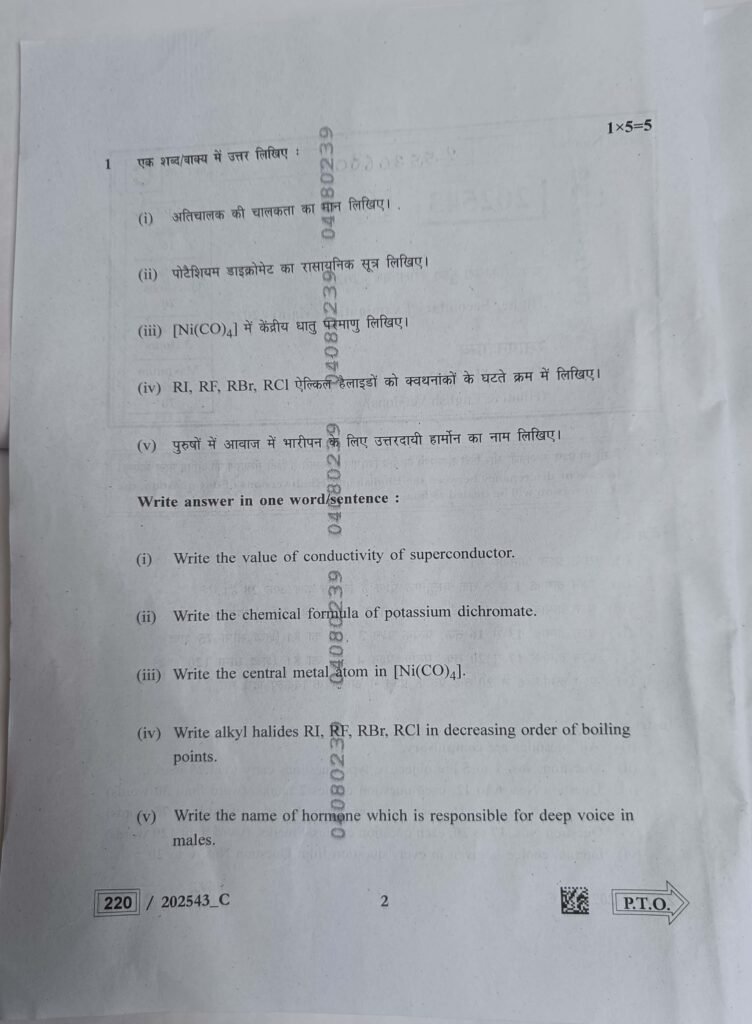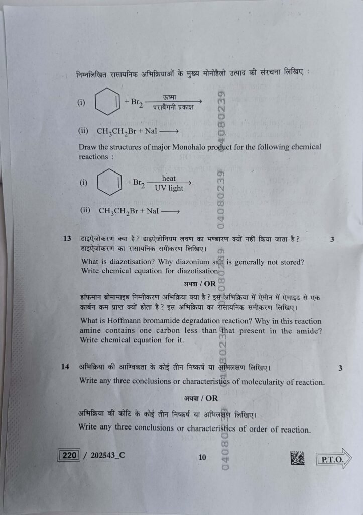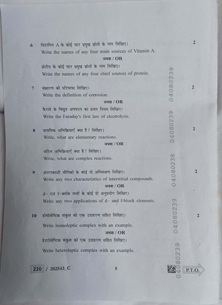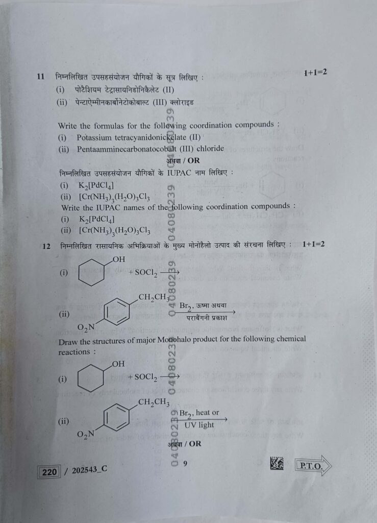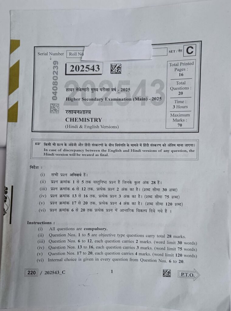 Chemistry (220) exam question paper – 12th, Higher Secondary Examination-2025, Madhya Pradesh board of secondary education. रसायनशास्त्र (220) परीक्षा प्रश्न पत्र – 12 वीं, उच्चतर माध्यमिक परीक्षा – 2025, मध्य प्रदेश माध्यमिक शिक्षा मंडल।
