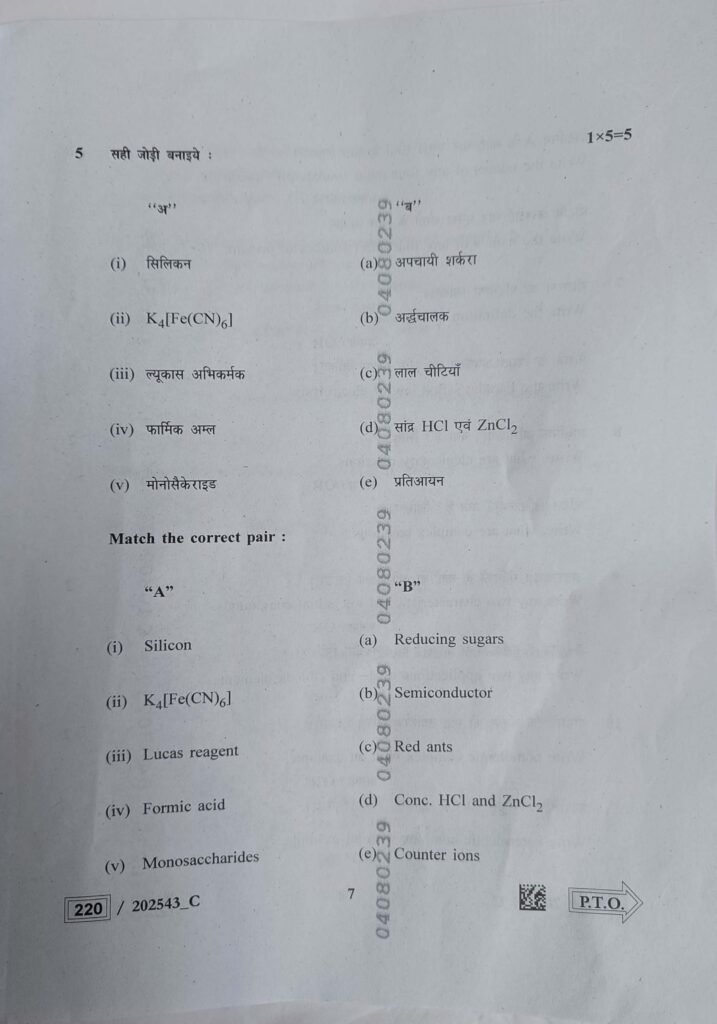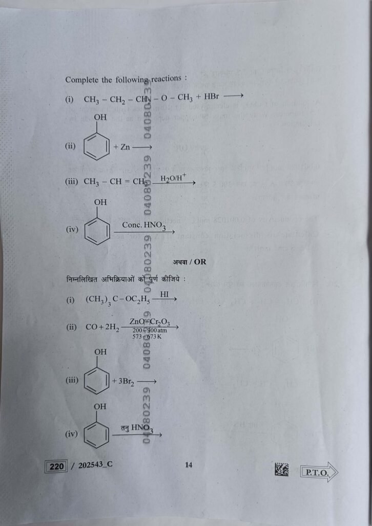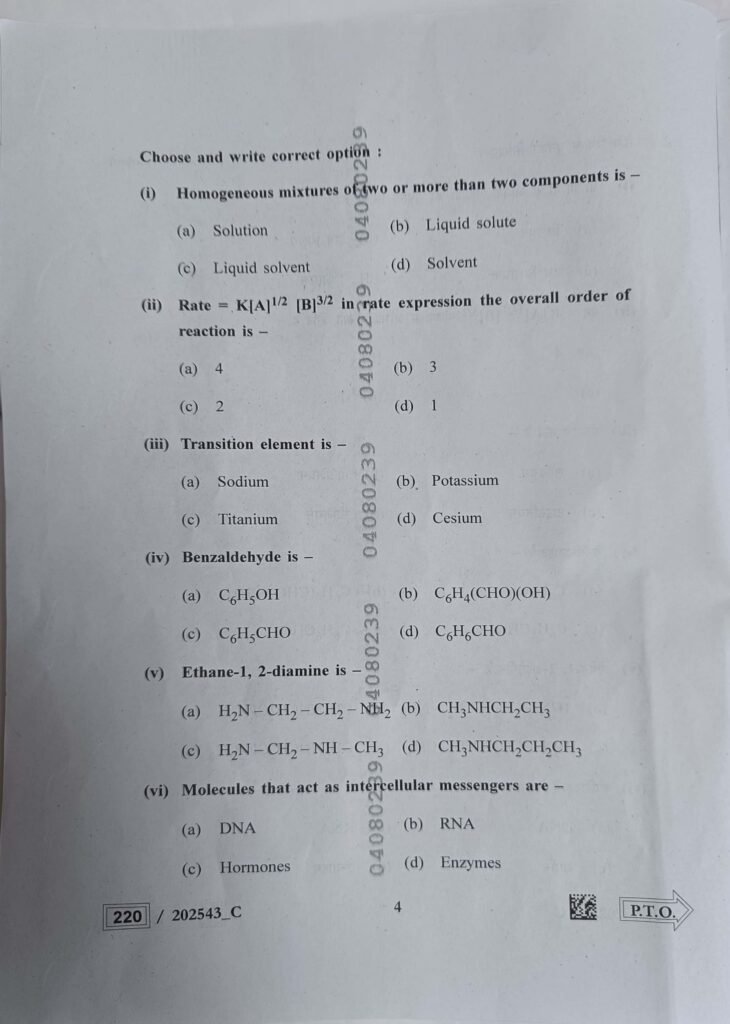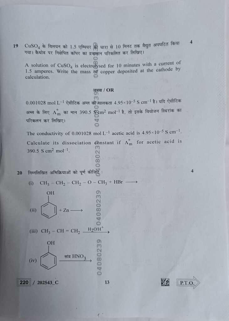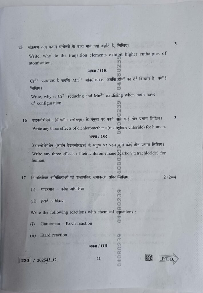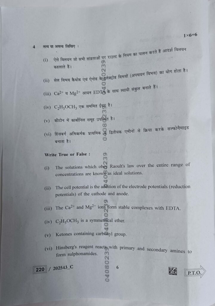 Chemistry (220) exam question paper – 12th, Higher Secondary Examination-2025, Madhya Pradesh board of secondary education. रसायनशास्त्र (220) परीक्षा प्रश्न पत्र – 12 वीं, उच्चतर माध्यमिक परीक्षा – 2025, मध्य प्रदेश माध्यमिक शिक्षा मंडल।