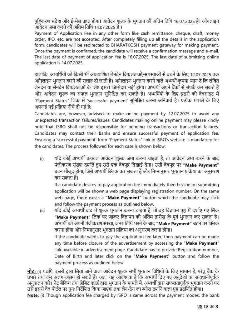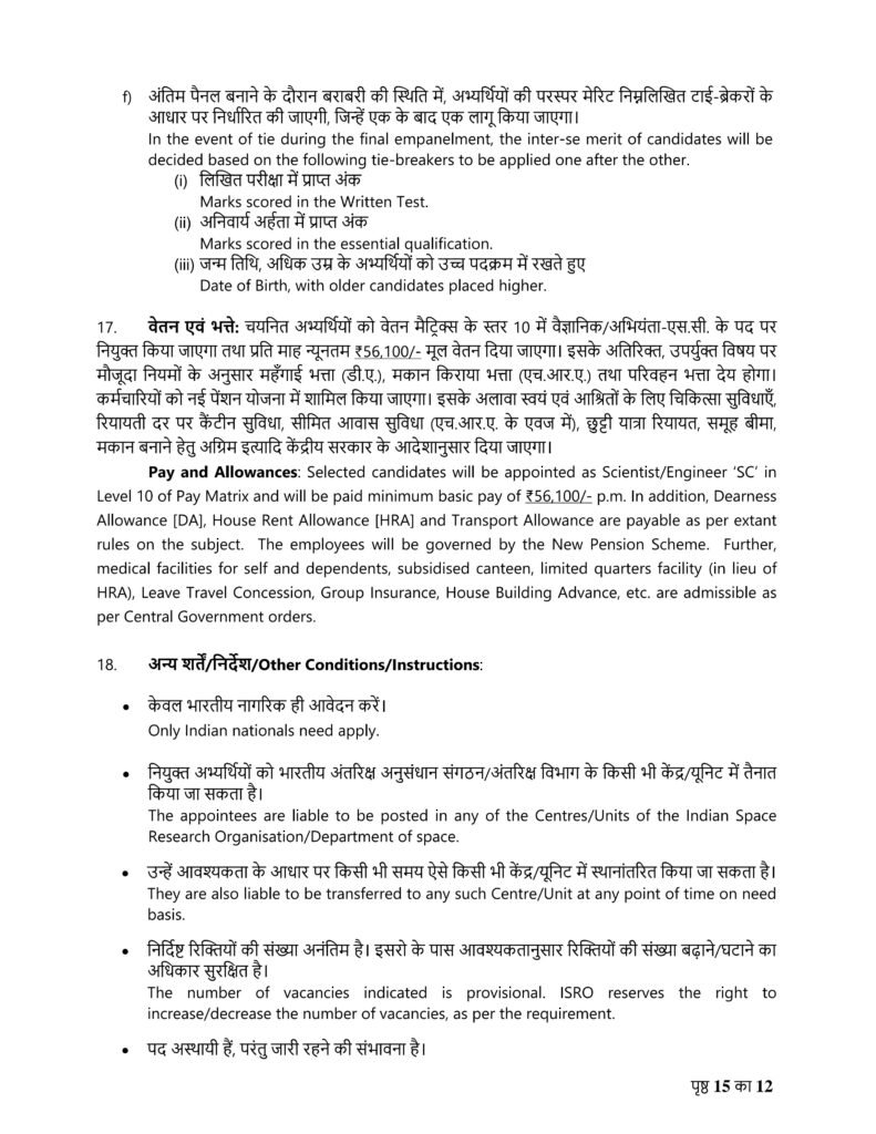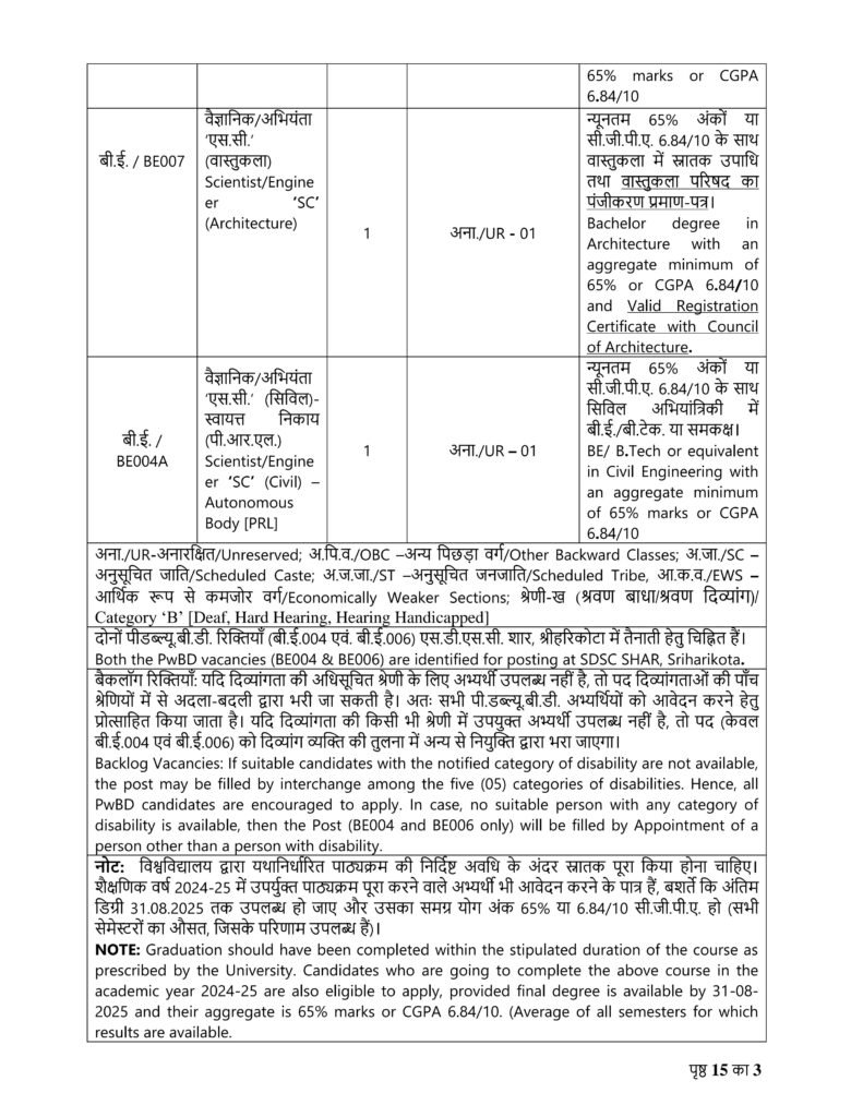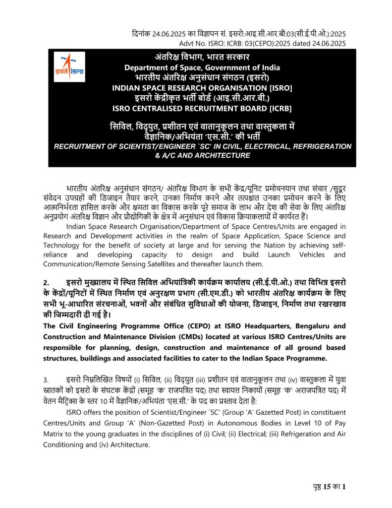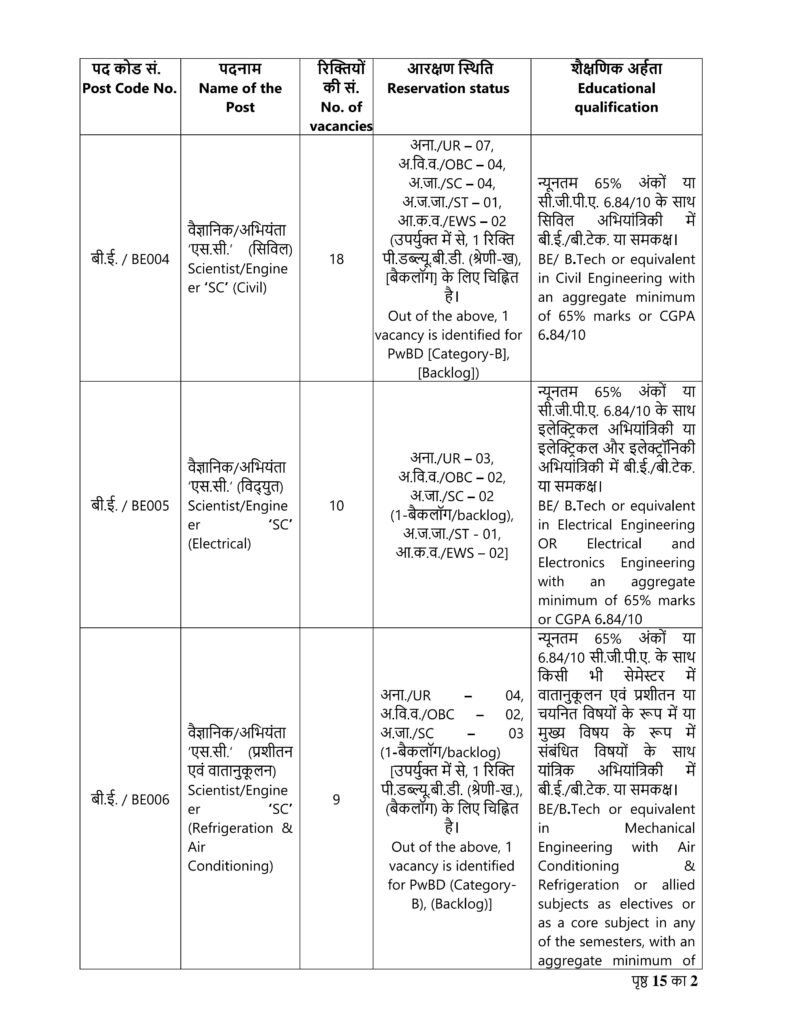 सिविल, विद्युत, प्रशीतन एवं वातानुकूलन तथा वास्तुकला में वैज्ञानिक/अभियंता ‘एस.सी.’ की भर्ती।