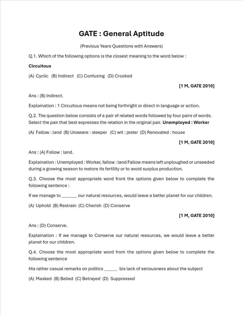 GATE (General Aptitude) 2010 Questions with Answers & solutions. 2024-25. GATE (General Aptitude) 2010 प्रश्न, उत्तर एवं समाधान के साथ।2024-25।